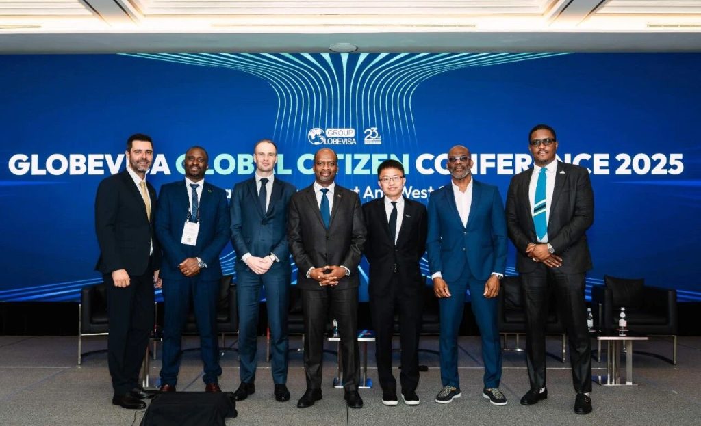 圣基茨投资入籍委员会执行主席 H.E. Calvin St. Juste、圣卢西亚投资入籍局局长 Mc Claude Emmanuel、格林纳达投资移民局局长 Thomas Anthony、瑙鲁投资入籍局CEO Edward Clark、圣多美和普林西比投资入籍局 CEO Alfredo Bragança da Trindade 与 环球出国CEO Henry Fan 、环球出国土耳其合伙人合影