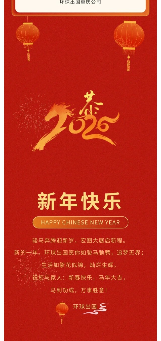 马踏春景,步步生辉。环球出国给全球朋友拜年了!