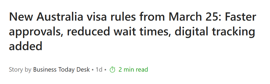 来源:MSN|New Australia visa rules from March 25: Faster approvals, reduced wait times, digital tracking added, 2026/03/24