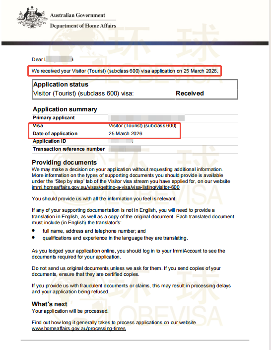 签证类别:澳洲 600 访客签证(旅游/探亲/商务)