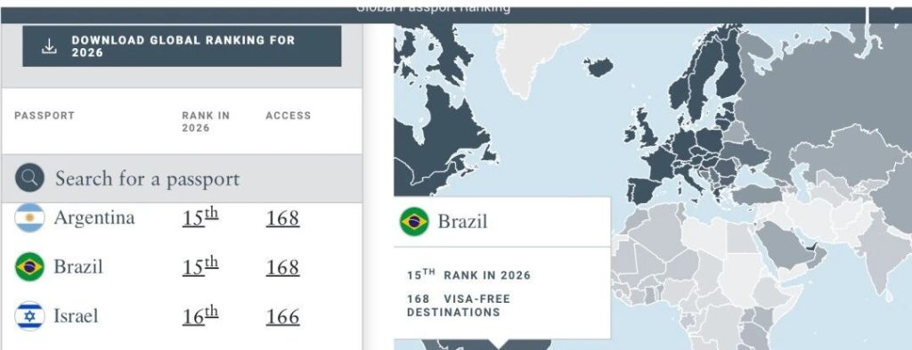 身份含金量红利:巴西护照在2026年全球排名中位列第十五,自由畅行包括申根区、英国在内的168个国家和地区。随着2026年对华免签政策的实施,巴西身份的流动性与战略价值已迈向新高度。对于通过退休签证(VITEM XIV)定居巴西的人群,居住满 4 年即可申请入籍。