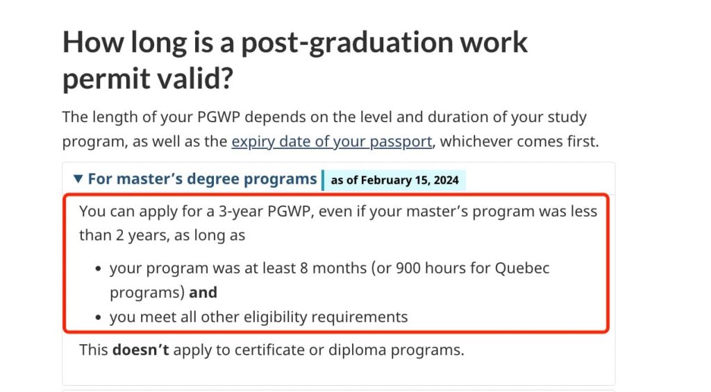 图片来源:https://www.canada.ca/en/immigration-refugees-citizenship/services/study-canada/work/after-graduation/about.html