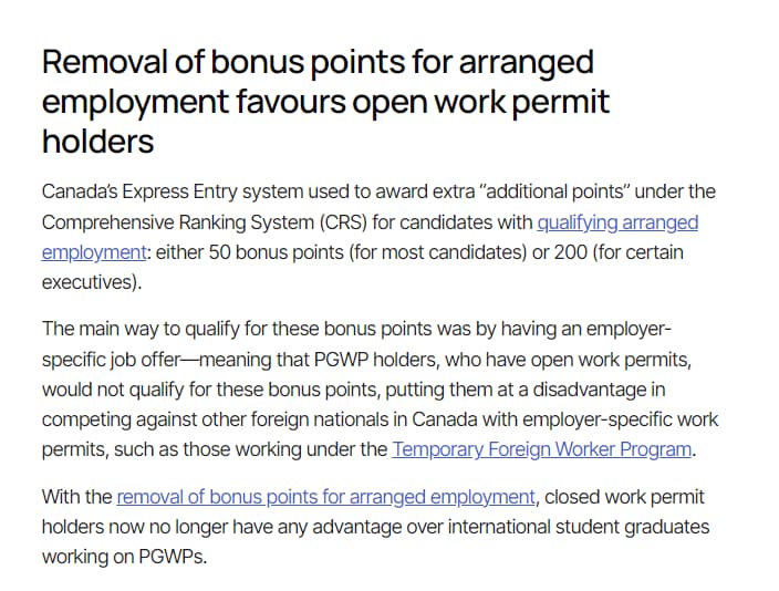 赛道回归纯粹:移民局(IRCC)已取消了部分封闭工签持有者的雇主担保额外加分。过去,这一规则让一些路径在分数上占优。如今,比拼的核心重回你的学历、语言、年龄和真实的加拿大工作经验。