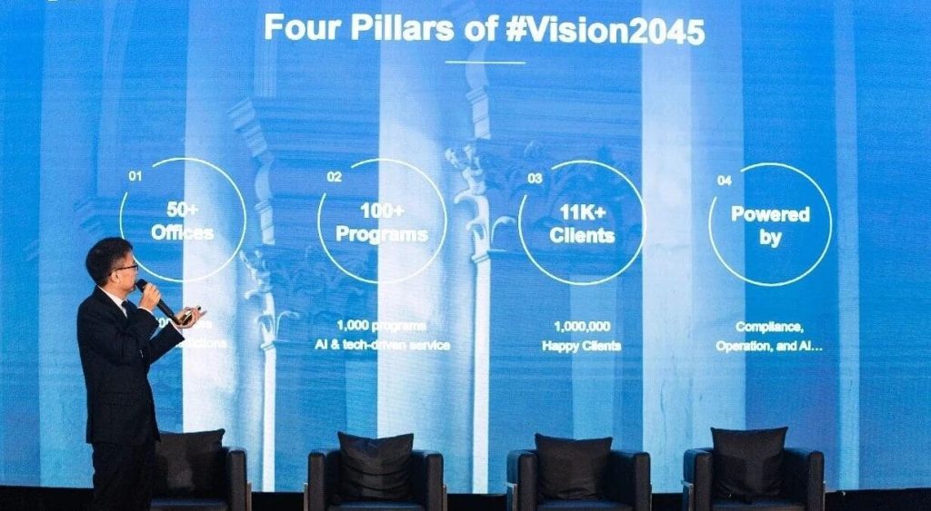 到2045年,环球出国希望成为全球移民出国服务的领航者,我们希望实现服务全球超过100万客户。在200个国家的400座城市里,成立专业团队为全球客户提供本地化服务。环球出国将深度探索、精心研发并运营超过1000多个项目