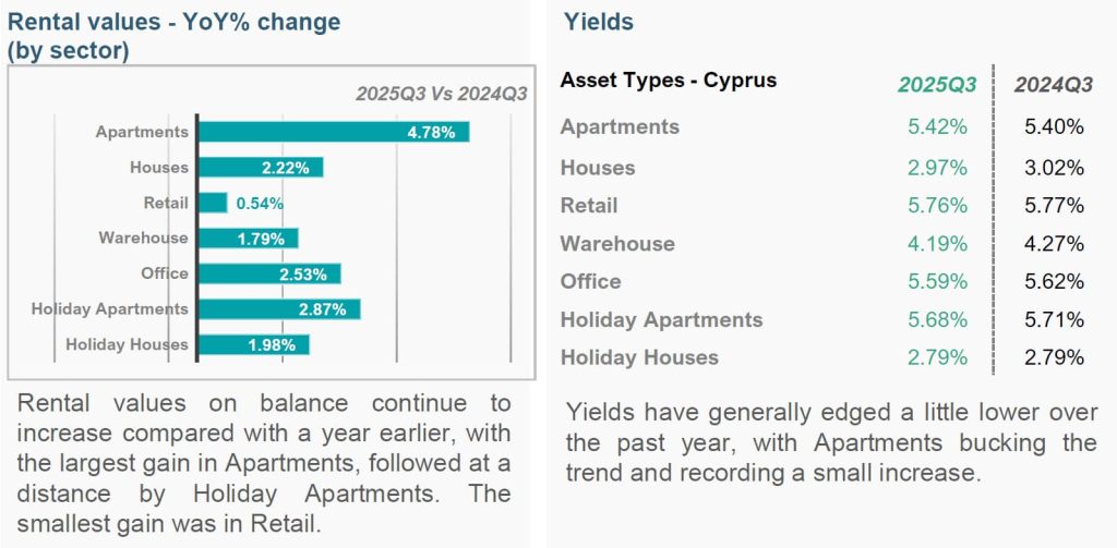 对于海外投资者而言,除了资产增值,稳定的“睡后收入”(租金回报)同样是决定投资价值的关键因素。RICS报告显示,得益于强劲的旅游业和外来人口的持续流入,塞浦路斯的租金水平持续走高: