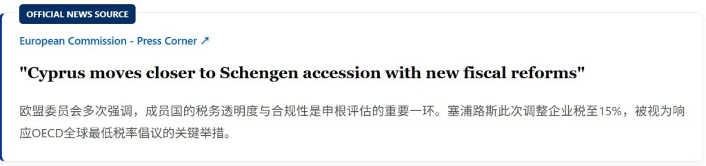 将税率上调至15%,是为了更符合OECD全球低税率标准。塞浦路斯正在主动剥离早期“野蛮生长”的标签。一个税务合规的塞浦路斯,才是一个能被申根区接纳的塞浦路斯。