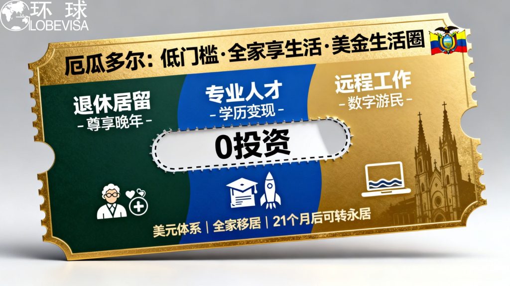 环球出国厄瓜多尔三大签证同步上线,首发红利期名额紧张,先到先得。抓住机会,一键开启赤道之下、美金之上的理想人生!