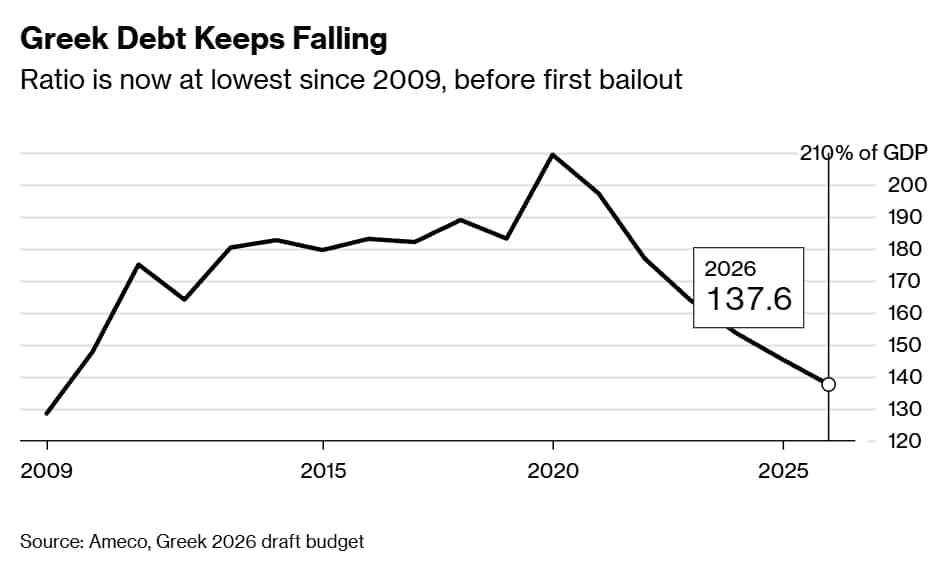 图片来源:https://www.bloomberg.com/news/articles/2025-10-06/greece-forecasts-debt-ratio-for-2025-to-reach-pre-bailout-low