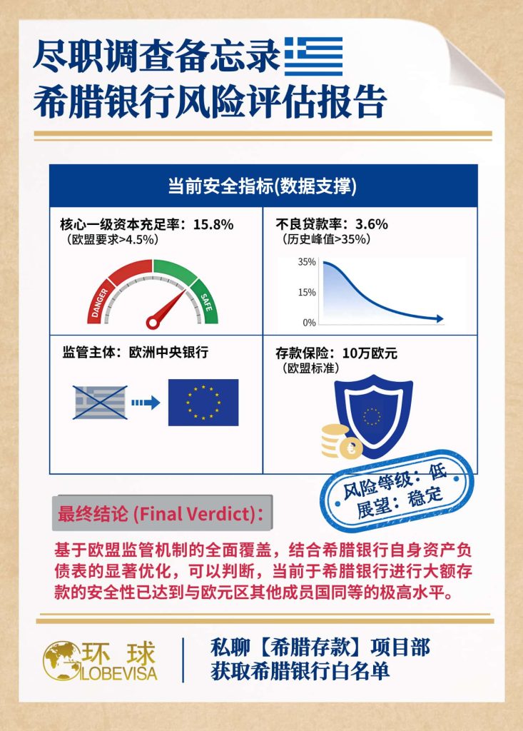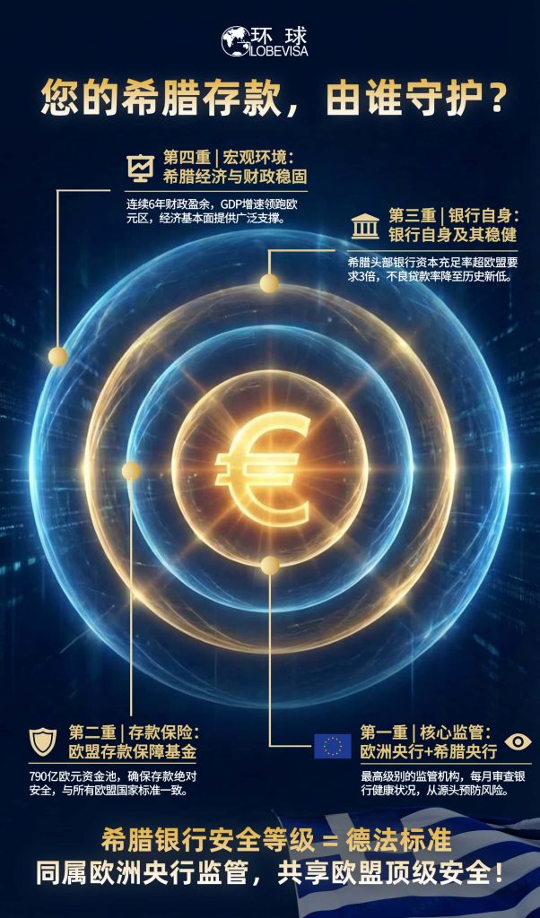 存款不仅享有希腊TEKE计划的保障,更处于欧盟统一的金融安全网下。环球甄选的合作银行均为希腊头部银行,资本充足率远超监管要求,进一步过滤机构风险。
