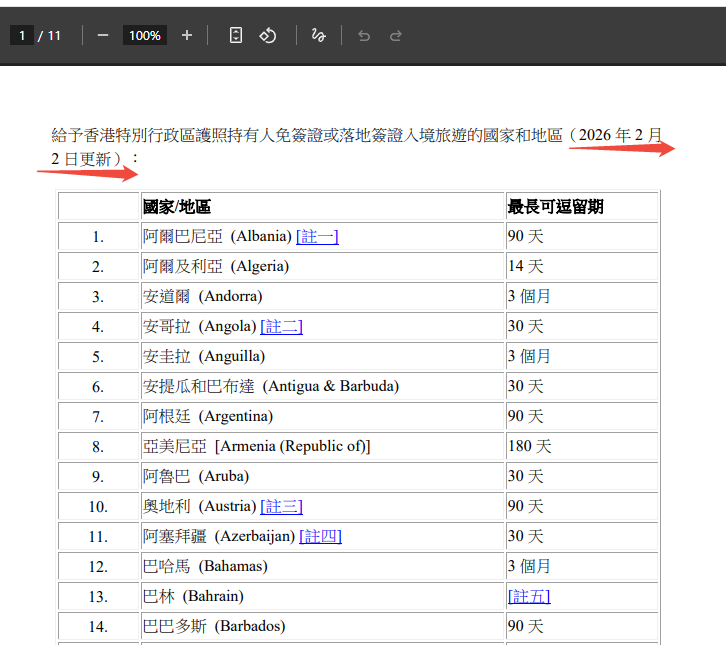 让我们来回顾一下,在2026年2月2日之前,其实香港特区护照就已经有加拿大、法国、德国、日本、瑞士等174个国家及地区给予香港特区护照持有人免签证或落地签证待遇。更多免签国家和地区的情况可以通过以下网站自行查询详情,在做好出行计划前记得在政府网站确认最新情况哦: