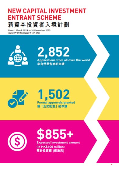 近日,香港投资推广署公示2025年年报:截至2025年12月31日【新资本投资者入境计划】申请突破2,852宗,逾1502宗获得正式批复信,估计为本港带来855亿元资金投入!