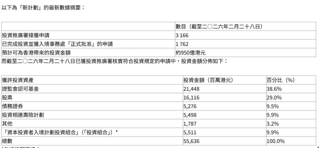 香港政府3月2日公布,”新资本投资者入境计划”(也就是大家说的”新投资入境计划”)从2024年3月推出到现在,已经跑了整整两年。这个计划挺受欢迎,全球不少有钱人都想来香港落户。截至2026年2月底,政府一共收到差不多3200份申请,如果全部获批,预计能给香港带来950亿港元的投资。这笔资金对巩固香港作为国际财富管理中心的位置,帮助很大。