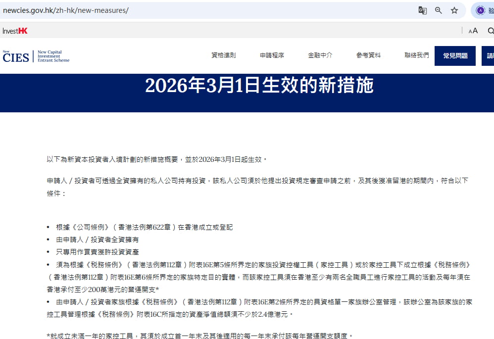 为了让计划更灵活,政府从2026年3月1日开始放宽规定。以前申请人要用控股公司(2.4亿家族办公室模式)投资,这公司必须成立满一定时间;现在新成立不到六个月的公司也能用,而且完全没有起步成立期限的要求。这样一来,投资者调配资产就更方便了。