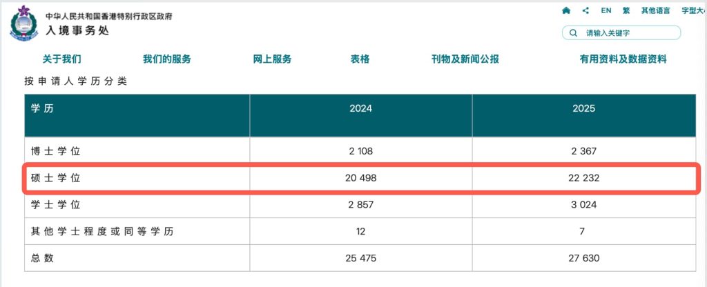 给大家看一组硬数据。根据香港入境事务处公布的2025年近期签证统计报告,通过“非本地毕业生留港/回港就业安排(IANG)”获批签证的内地人士高达26,355人。而在所有IANG获批者中,拥有硕士学位的人数达到了惊人的22,232人,占据了主导地位。这表明,香港不仅需要刚毕业的“学术白纸”,更渴望自带资源和经验的“即战力”。
