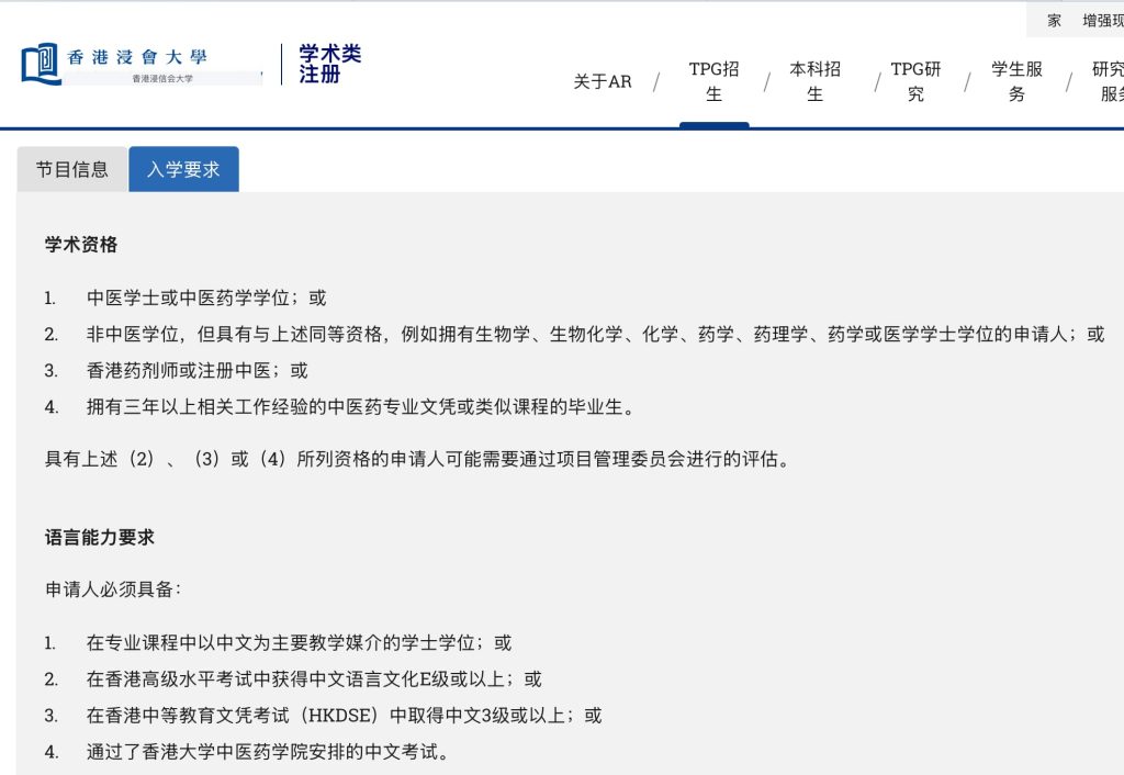 数据来源:https://ar.hkbu.edu.hk/tpg-admissions/programmes/master-of-pharmaceutical-sciences-in-chinese-medicine-mps