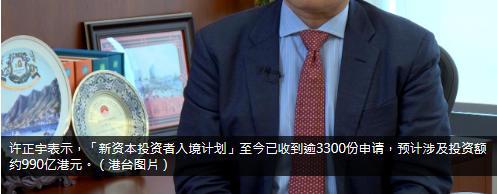 来源:rthk.hk香港电台网站|许正宇:「新资本投资者入境计划」已收到逾3300份申请
