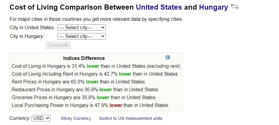 低成本高品质生活:在布达佩斯市中心租一套一居室公寓仅需500-700欧元,而同等品质在巴黎或柏林至少需要1200欧元。据Numbeo 2024年数据,匈牙利生活成本比美国低45%,比西欧国家平均低40% 以上。