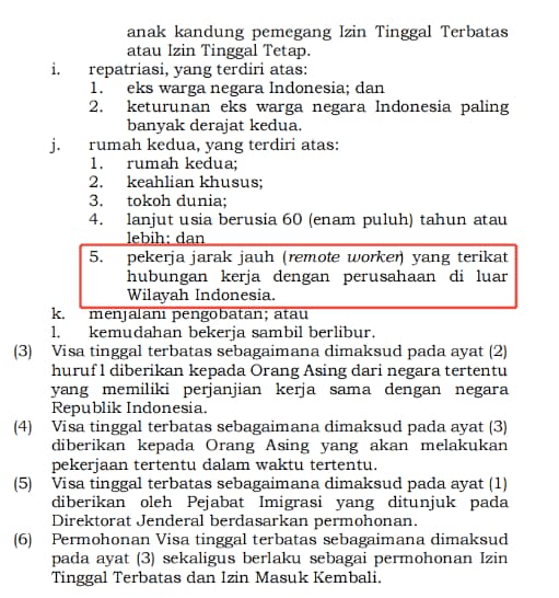 5.禁止在印尼从事任何获得印尼个人或企业的报酬、工资或任何类似形式的酬劳的工作