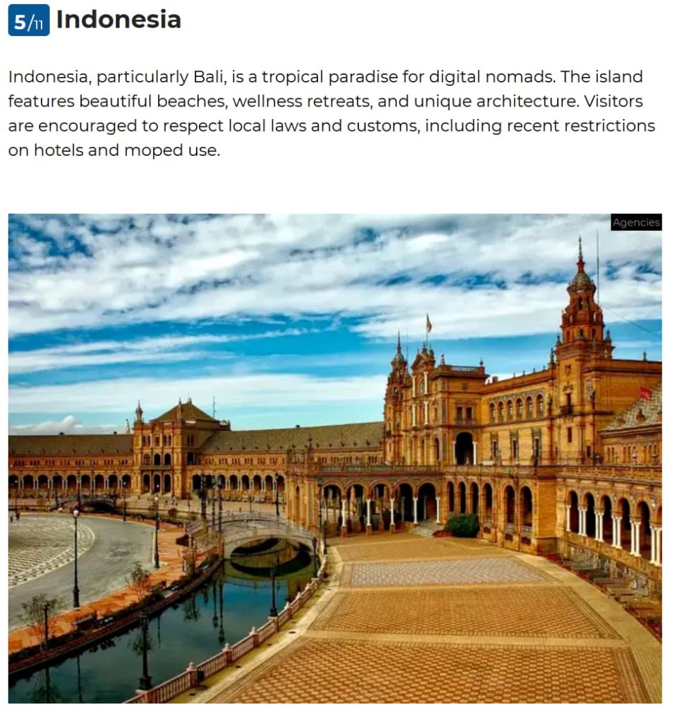 图片来源:https://economictimes.indiatimes.com/nri/visit/10-best-countries-for-digital-nomads-in-2025/spain/slideshow/123543947.cms