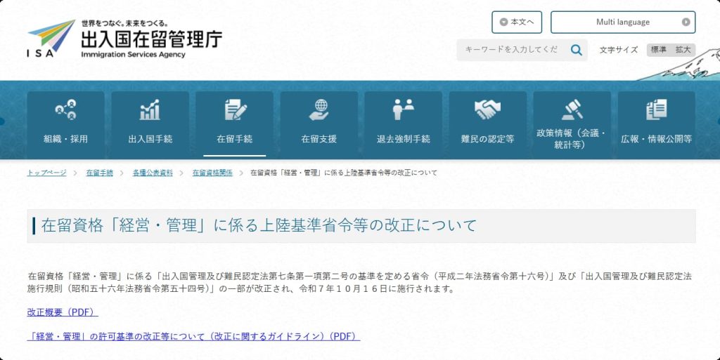 针对「经营・管理」在留资格的法律依据和实施细则的修订,将于2025年10月16日正式生效。