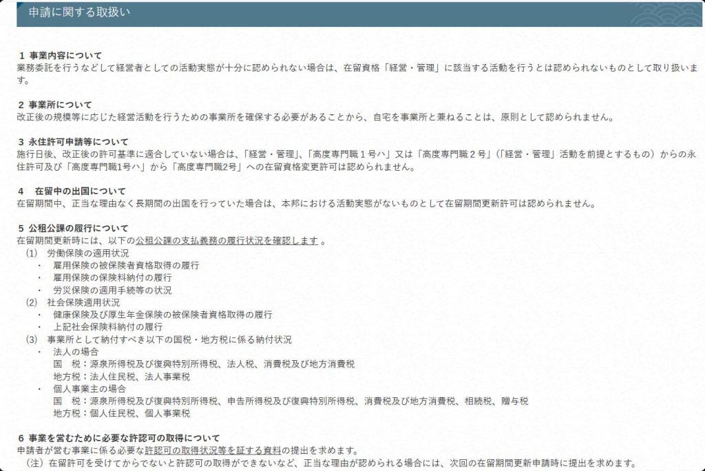 3. 永居申请:生效日后,若不符合修改后的许可标准,将无法获得以“经营管理”活动为基础的“经营”、“高度专业1号(ha)”或“高度专业2号”的永居许可,也无法获得从“高度专业1号(ha)”变更为“高度专业2号”的居留资格的许可。