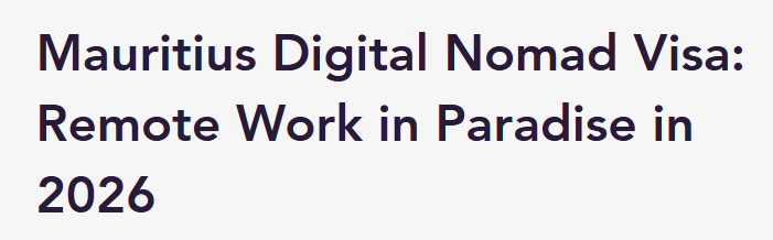 根据Nomadic Expert网站2026年报道的《Mauritius Digital Nomad Visa: Remote Work in Paradise in 2026》,毛里求斯凭借更加宽松的条件、更高的审批效率以及印度洋天堂般的宜居环境,正迅速崛起为全球数字游民的理想目的地!