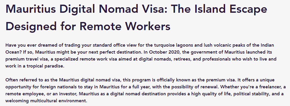来源:Nomadic Expert|Mauritius Digital Nomad Visa: Remote Work in Paradise in 2026