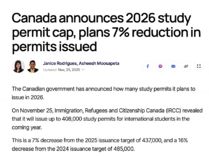【加拿大】加拿大2026学签继续限额:本科需名额,硕士成更稳移民路径