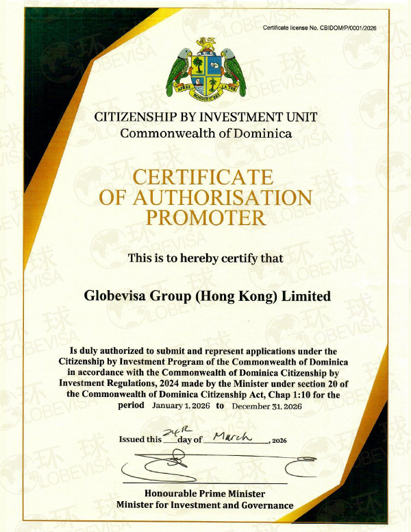 作为全球领先的身份规划专家,环球出国已正式获得多米尼克政府(Dominica CBIU)颁发的 2026 年度官方代理资质证书!该资质的延续,体现出官方对环球出国专业服务能力、合规标准与品牌实力的持续认可,也进一步夯实了环球出国在加勒比护照项目领域的领先优势。