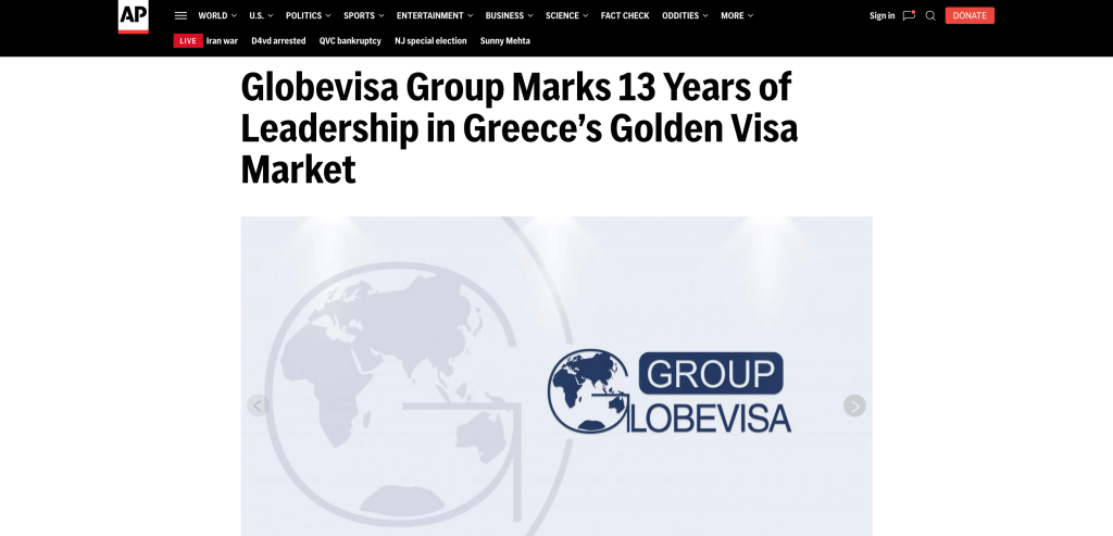 近日,世界三大通讯社之一的美联社报道了环球出国希腊项目,彰显环球出国在希腊身份规划领域的专业实力。凭借13年深耕市场与100%成功率,环球出国再次获得国际权威媒体关注。这不仅是品牌影响力的体现,也进一步印证了客户选择专业机构进行海外身份配置的重要价值。
