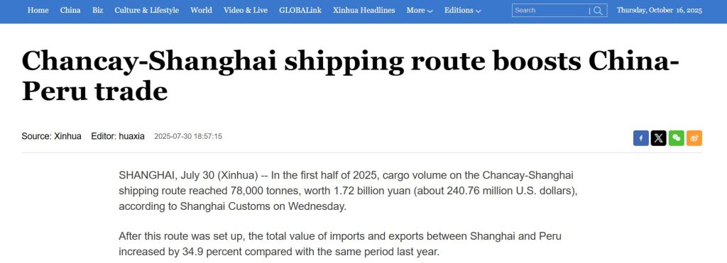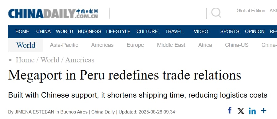 权威媒体China Daily推出重磅报道,报道指出秘鲁的钱凯港(Chancay Megaport)已经成为全球贸易的焦点!