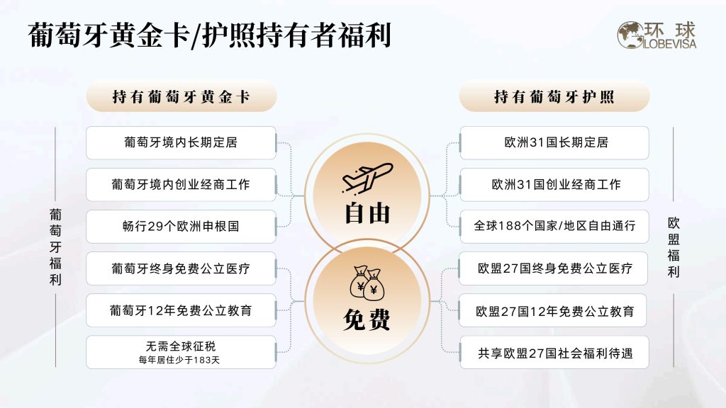 葡萄牙护照全球排名第四,免签188个国家/地区,可享受欧盟27国公民福利待遇,包含免费公立医疗、免费公立教育等。