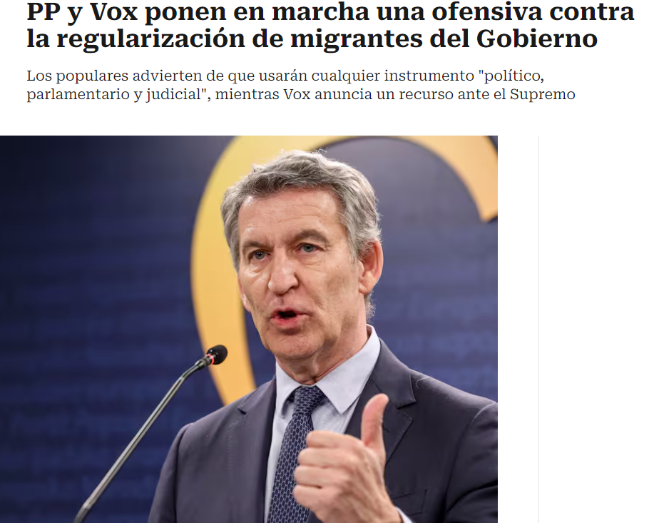 来源:SER|PP y Vox ponen en marcha una ofensiva contra la regularización de migrantes del Gobierno,2026/04/14