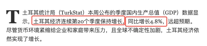 • GDP20连涨:土耳其经济已实现连续第20个季度的正增长2025年同比增长 4.8%,远超市场预期。