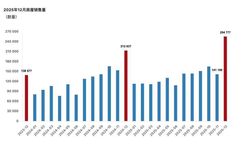 • 12月爆发:仅12月单月成交就达 254,777套,环比11月猛增 80.6%。这种“年末抢购”潮,反映了市场对2026年降息预期的提前抢跑。