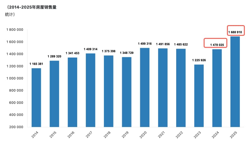 • 信贷信心回升:2025年抵押贷款类销售(房贷购房)同比大增 49.3%,显示本地购买力正在强劲复苏。