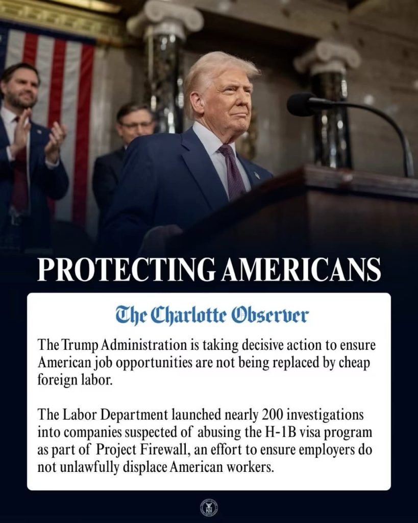 如果你或你的孩子正在美国留学,计划通过H-1B抽签留美,那么这两天的消息可能会让你彻夜难眠。一张来自《夏洛特观察报》(The Charlotte Observer)的截图在留学圈疯传:特朗普政府正式启动“防火墙计划”(Project Firewall),劳工部已针对H-1B滥用行为展开近200项专项调查,该计划主要是为了防止廉价的外籍员工挤占本地员工的工作机会。